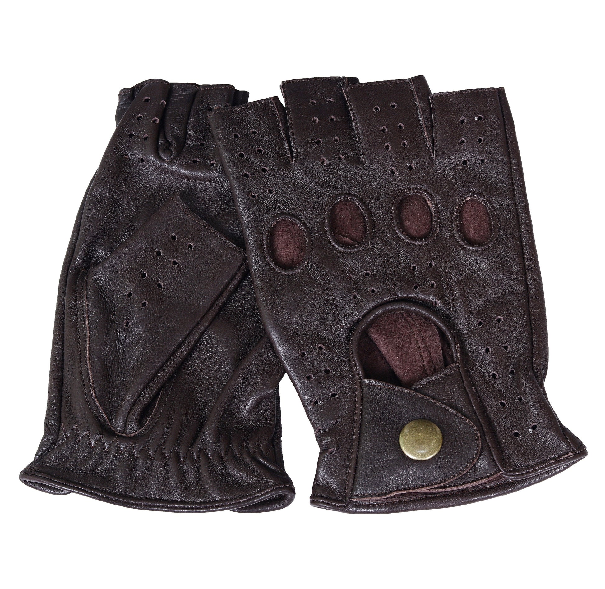 Chocolate Brown Half finger Lambskin Leather Gloves