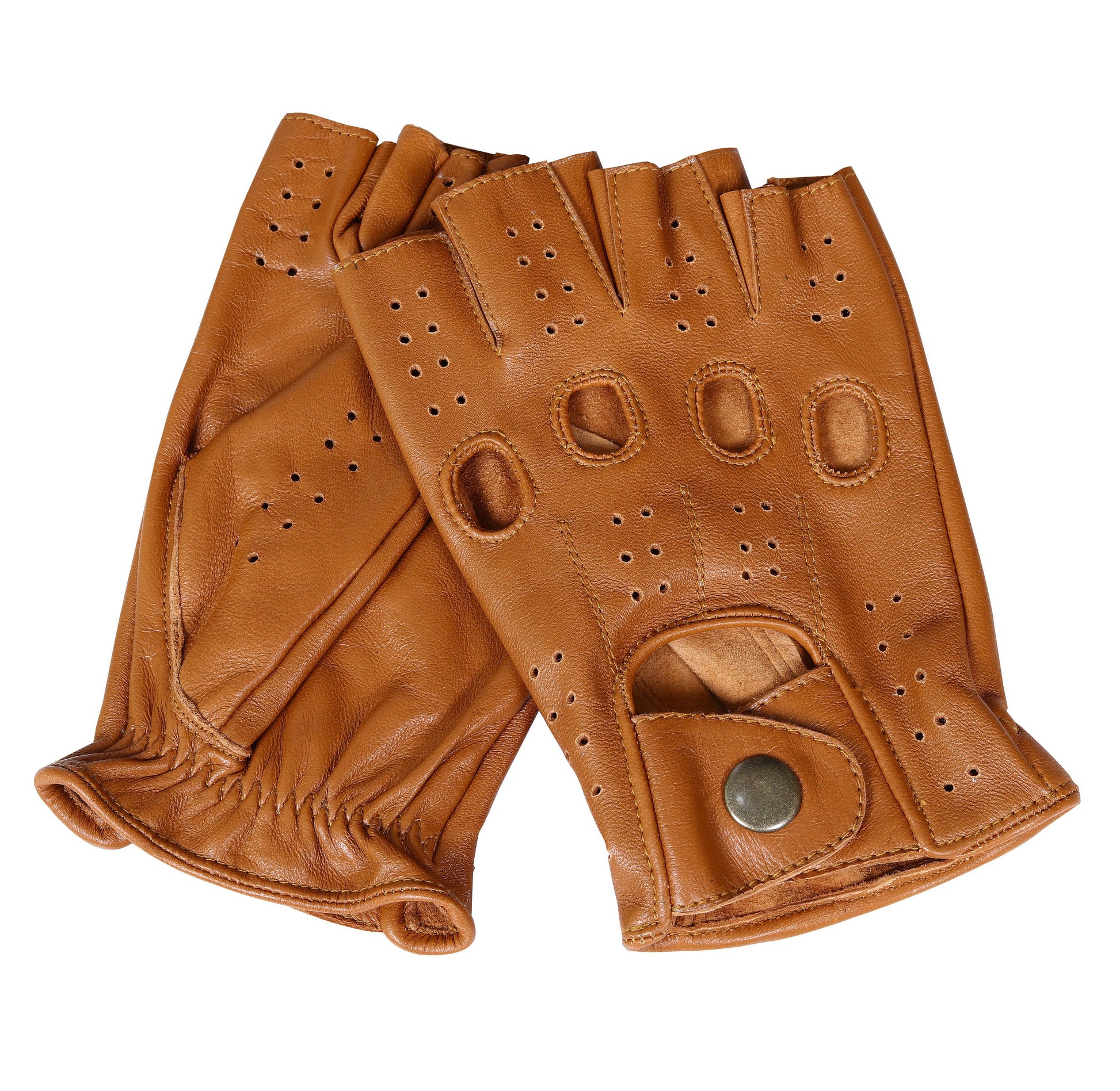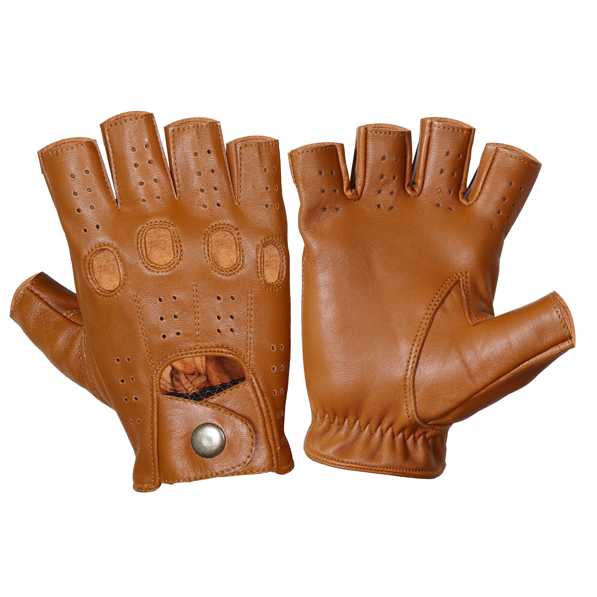 These Tan Half finger Lambskin Knuckle Leather Gloves aren't just an accessory; they're a bold statement piece, adding an edgy touch to any ensemble. Crafted from premium lambskin leather, they offer unparalleled softness and comfort. Whether you're cruising down the highway, running errands in the city, or attending a formal event, these gloves are the ideal companion for any occasion, including chauffeuring duties.